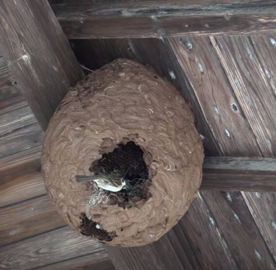 巨大なスズメバチの巣は、見た目が不気味で、家屋の景観を損なう可能性がありますし、大きな蜂の巣が見えるところに放置されていると近隣の住民の方の不安感も煽ります。