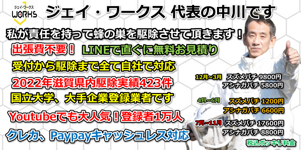 滋賀のハチ駆除「ジェイ・ワークス」は下記をお約束いたします!